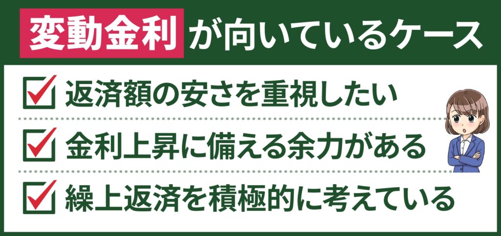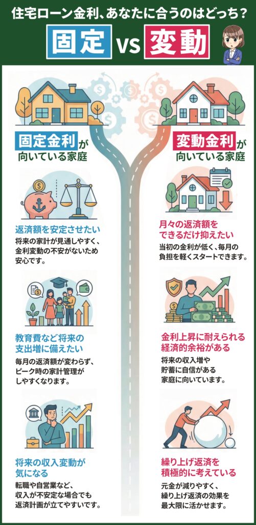 共働きで手元資金を厚くしておきたい家庭でも選ばれやすい金利タイプです。