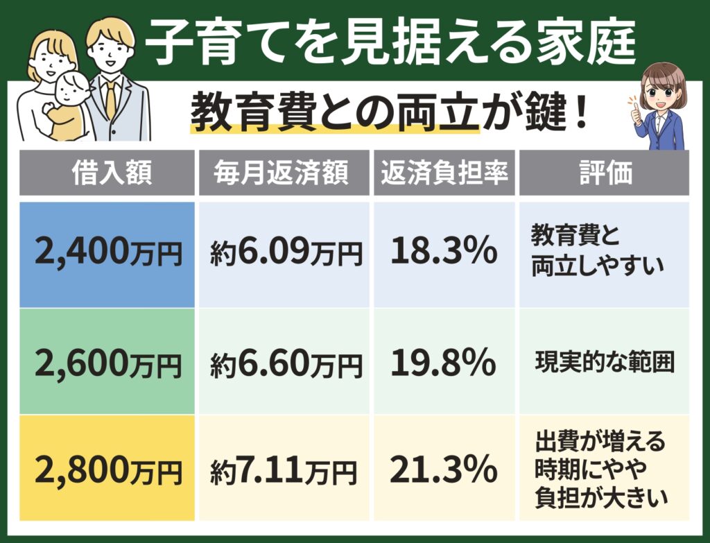 子育て世帯では、将来の教育費や生活費の増加を前提に返済額を設定する必要があります。