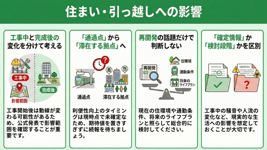 そのため住まい選びや引っ越しの判断においては、確定情報と検討段階の情報を分けて整理し、公式発表を基準に判断する姿勢が欠かせません。