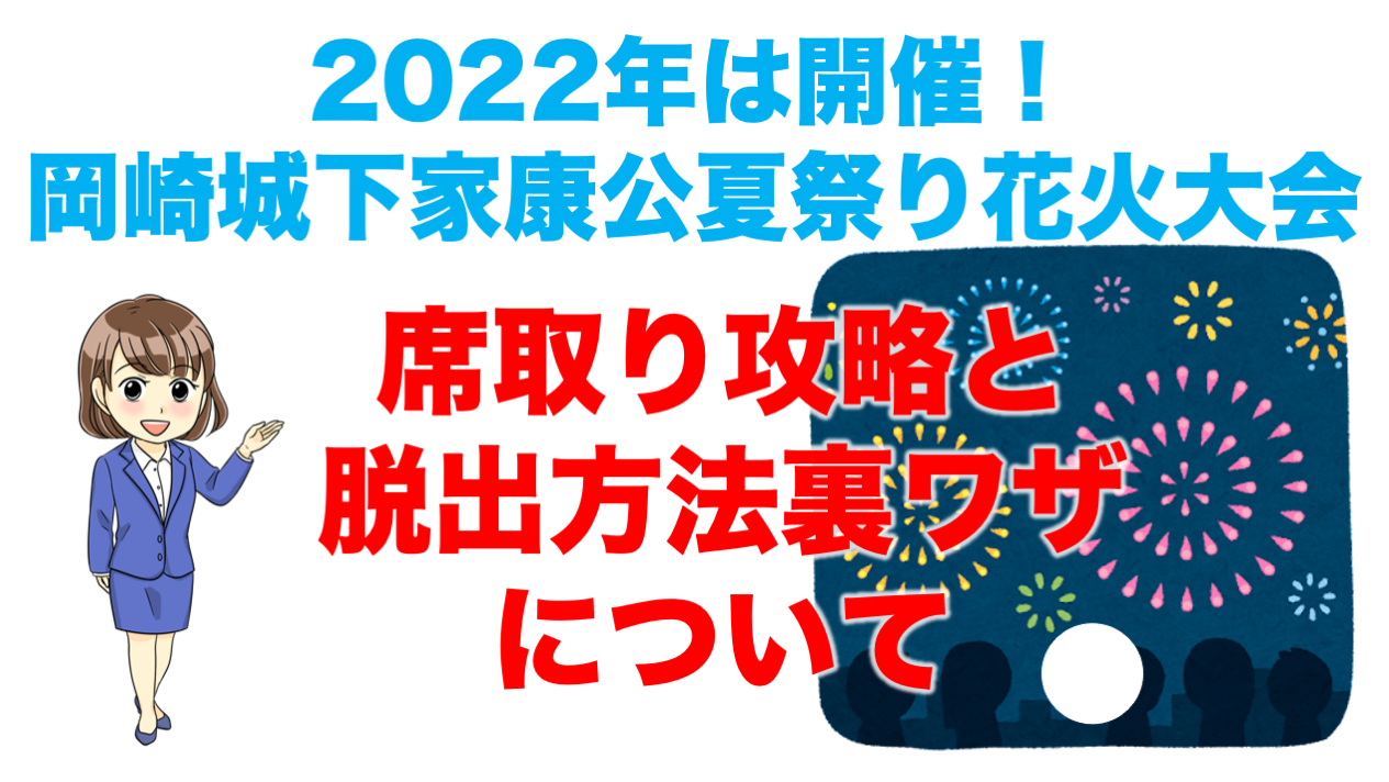 続いて、岡崎城下家康公夏まつり第75回花火大会をより快適に楽しむための、席取り&脱出のコツを解説。