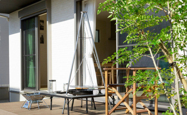 屋内と屋外をつなぐウッドデッキや高フェンス付きの庭を追加して、休日にバーベキューを楽しむといった例もあります。