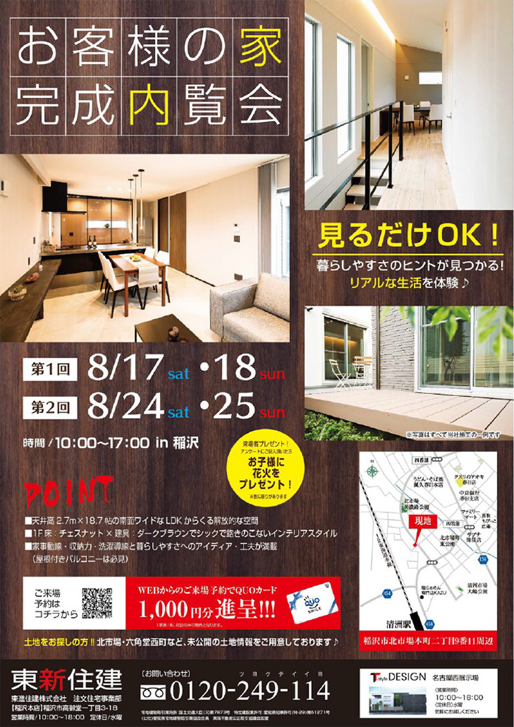 稲沢市北市場にて8月17日(土)・18日(日)・24日(土)・25日(日)『お客様の家 完成見学会』開催!!只今ご予約受付中!!