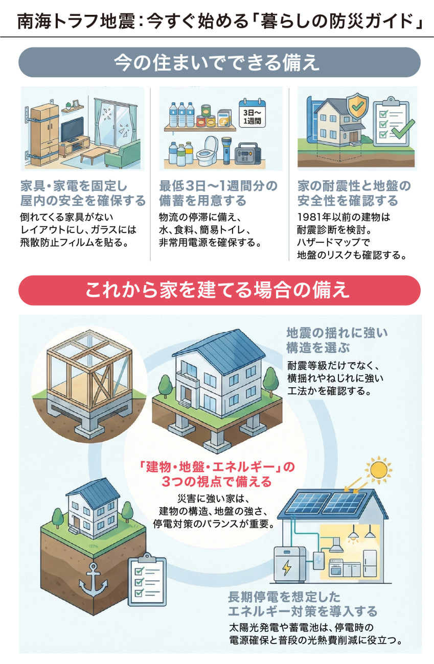 [2] => 南海トラフを想定した暮らしの防災ガイド|家・備蓄・ライフラインの整え方