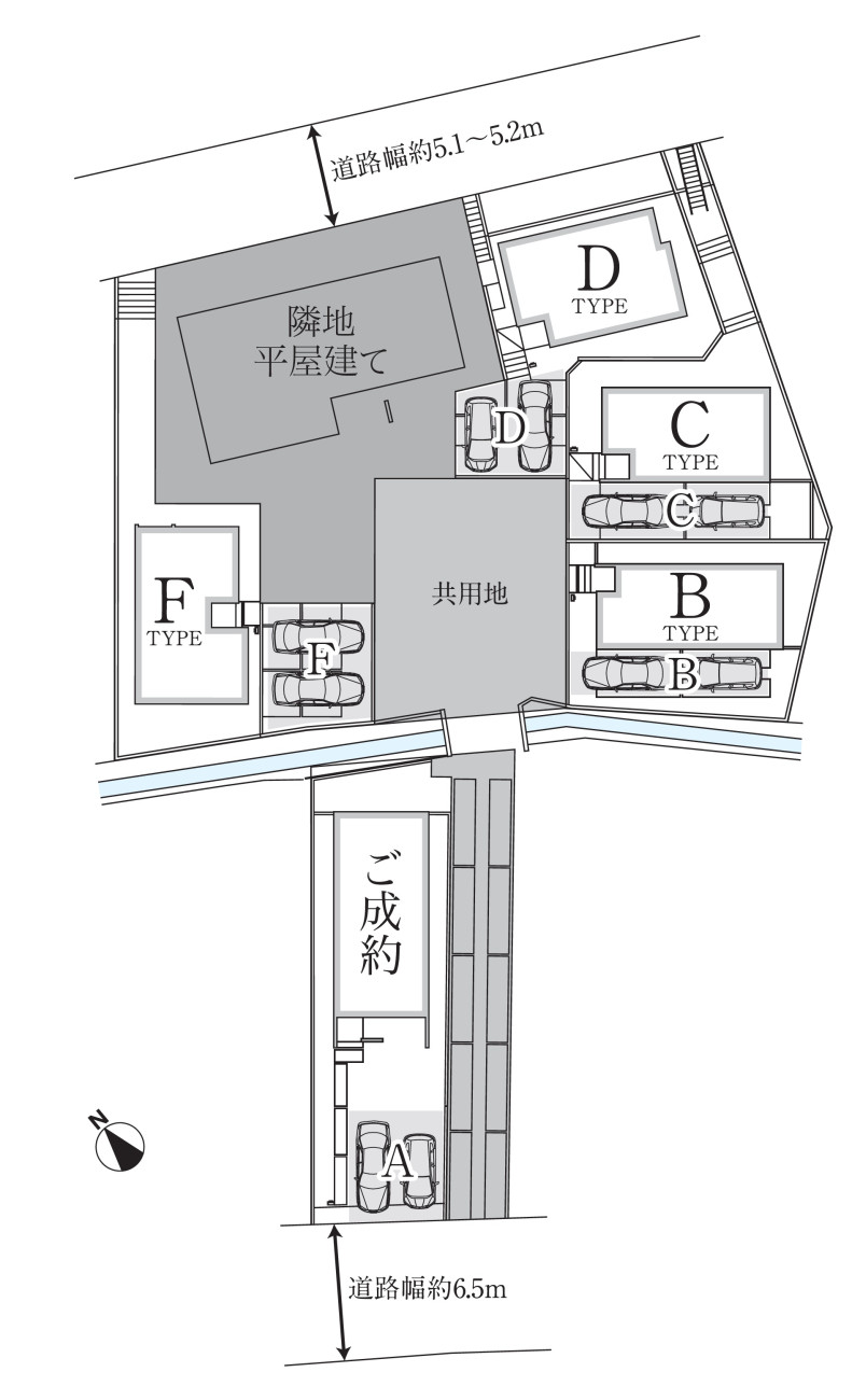 接面道路 | 北東側公道約5.1~5.2m、南西側公道約6.5m |