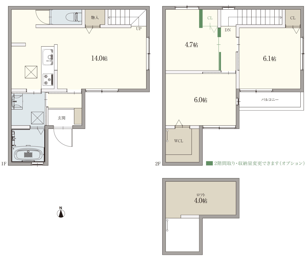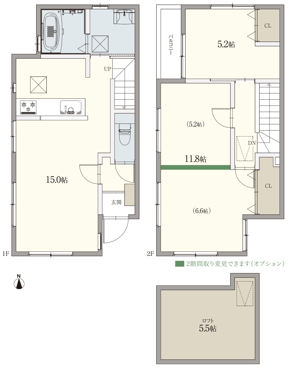 延床面積 | 73.72㎡(22.30坪)A1、68.33㎡(20.66坪)A2、77.09㎡(23.31坪)B1、76.26㎡(23.06坪)B2 |