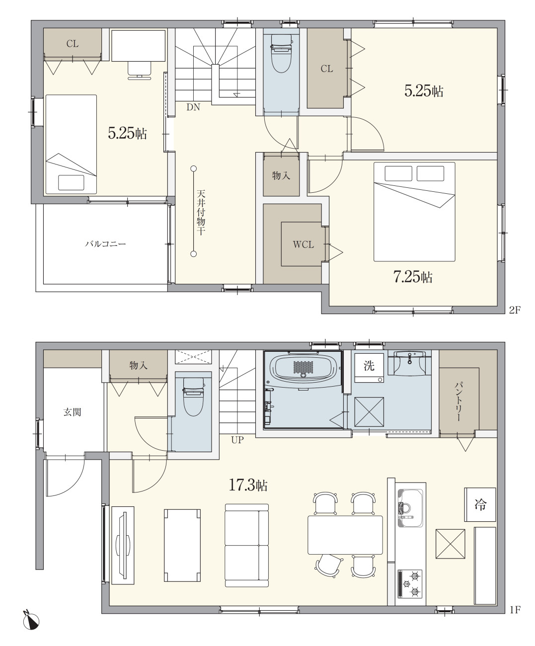 | Atype | 敷地面積/173.82㎡(52.58坪) 延床面積/103.63㎡(31.34坪) |