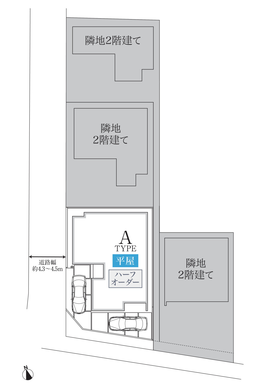 接面道路 | 西側公道約4.3~4.5m、南側公道約2.8m(セットバック含む) |
