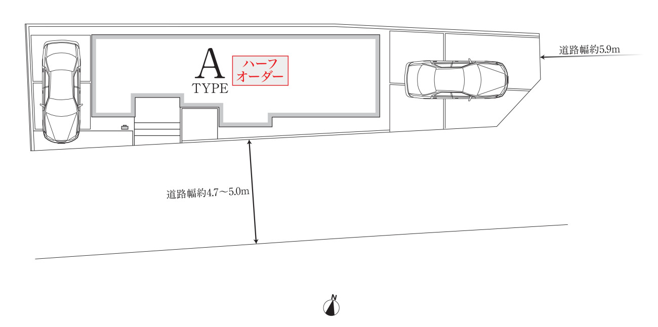 【接面道路】 | 東側公道約5.9m、南側公道約4.7~5.0m |