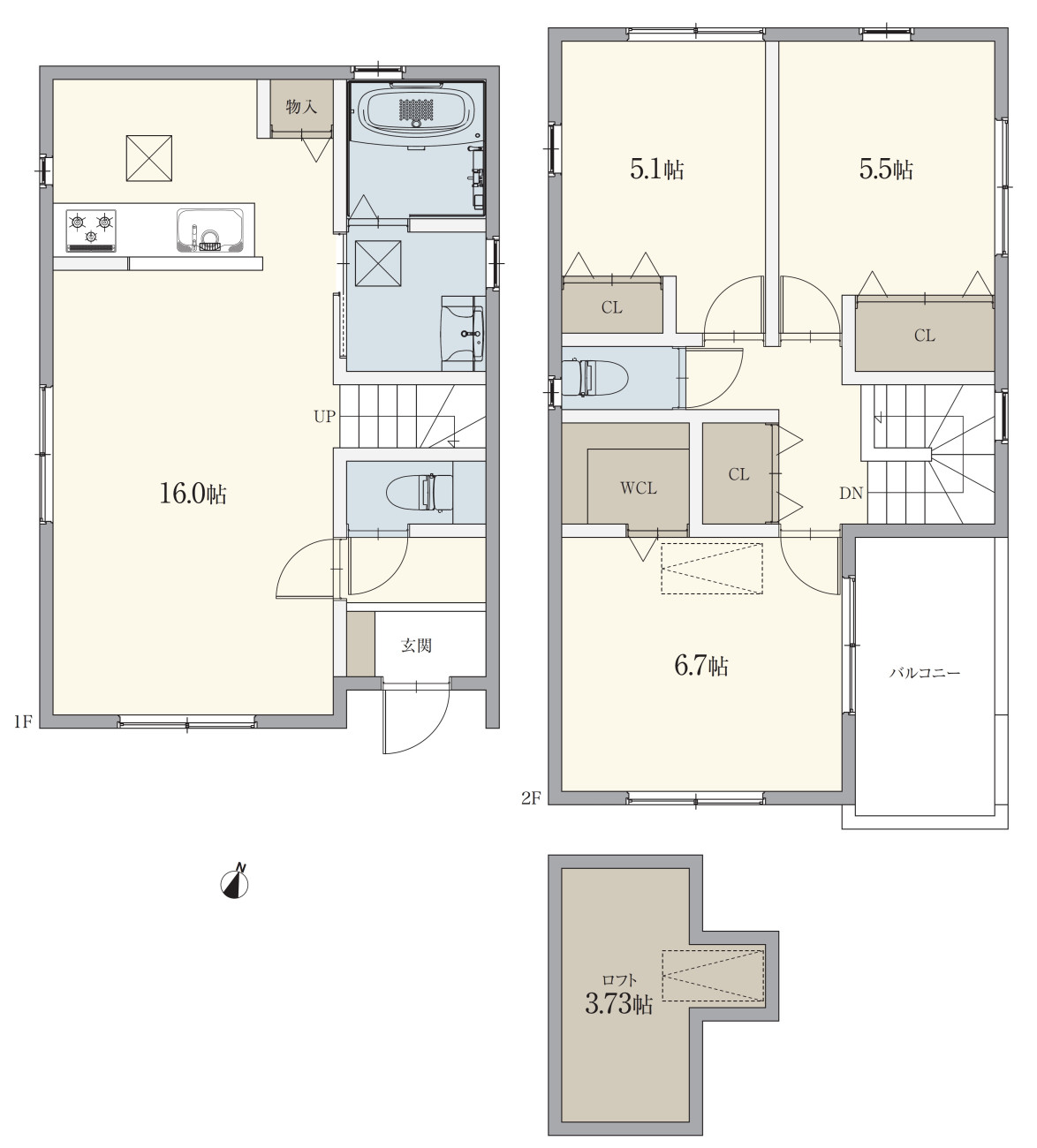 【延床面積】 | 85.11㎡(25.74坪)A、86.54㎡(26.17坪)B |