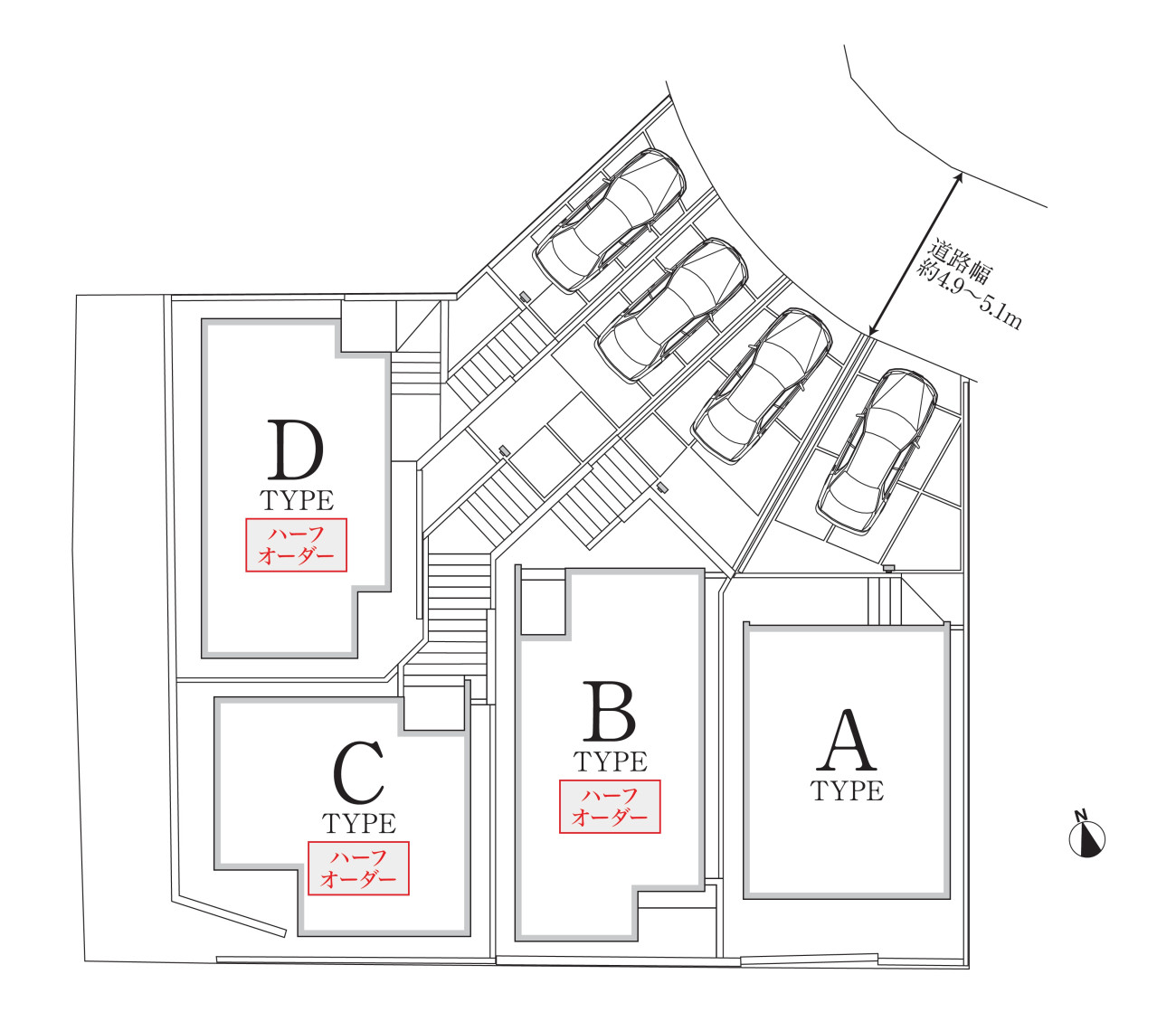【接面道路】 | 北東側公道約4.9~5.1m |