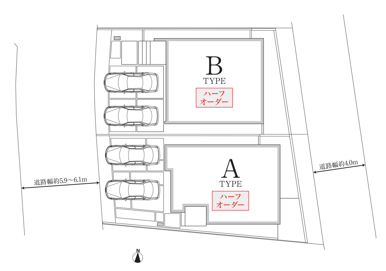 西側公道約5.9~6.1m、東側公道約4.0m |