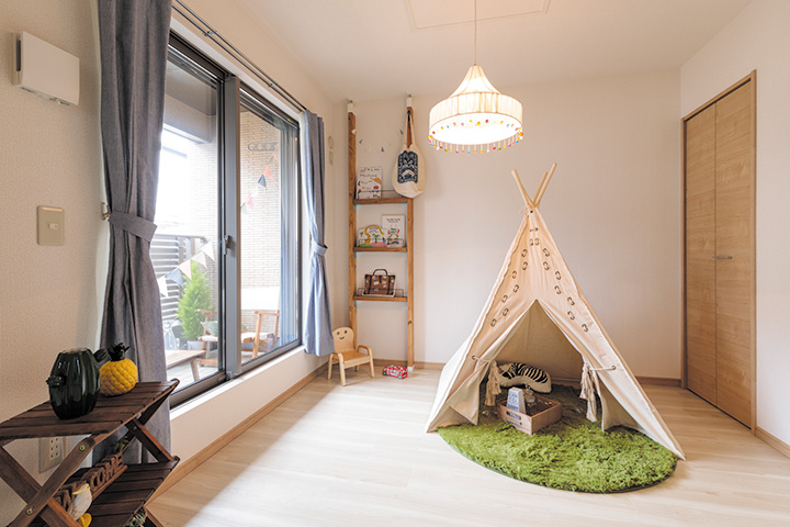 二階洋室は小さいお子様のプレイルームにぴったり。晴雨を問わず思い切り遊べます。そんな配慮も若い家族から高いご支持を得ている理由です。